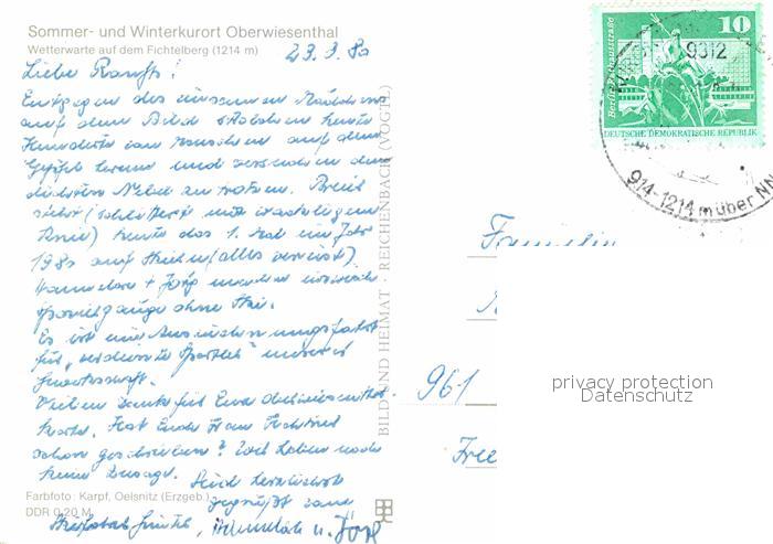 72668652 alte Postkarte Oberwiesenthal Erzgebirge Wetterwarte auf dem Fichtelberg postalisch gelaufen Erhaltung siehe scans [LiesaD40] KatCode: 11110014171240