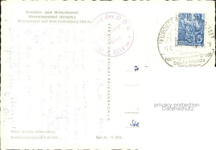 72385580 alte Postkarte Oberwiesenthal Erzgebirge Wetterwarte auf dem Fichtelberg postalisch gelaufen Erhaltung siehe scans KatCode: 11110014171240