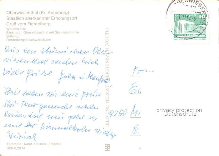 72326123 alte Postkarte Oberwiesenthal Erzgebirge Wetterwarte Sprungschanze Skihang Fichtelbergschwebebahn postalisch gelaufen Erhaltung siehe scans KatCode: 11110014171240