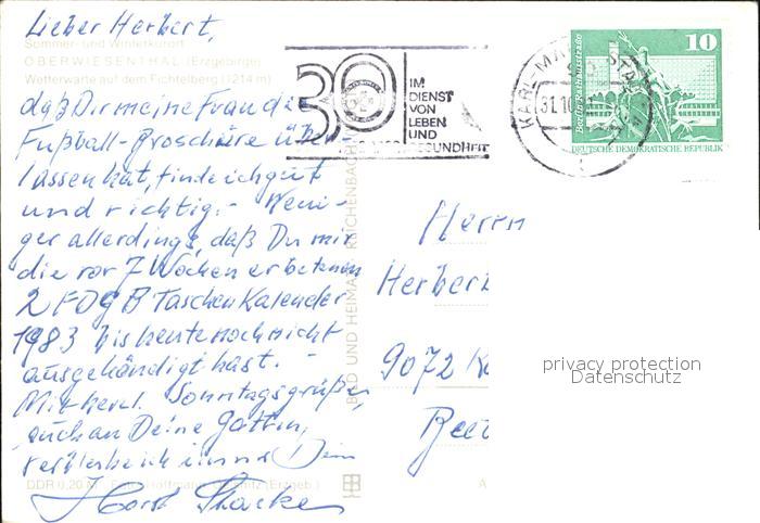 72476536 alte Postkarte Oberwiesenthal Erzgebirge Wetterwarte postalisch gelaufen Erhaltung siehe scans KatCode: 11110014171240