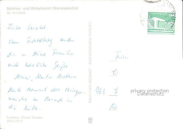 72326064 alte Postkarte Oberwiesenthal Erzgebirge Winteridyll Bergbahn Sessellift Skikurs postalisch gelaufen Erhaltung siehe scans KatCode: 11110014171240