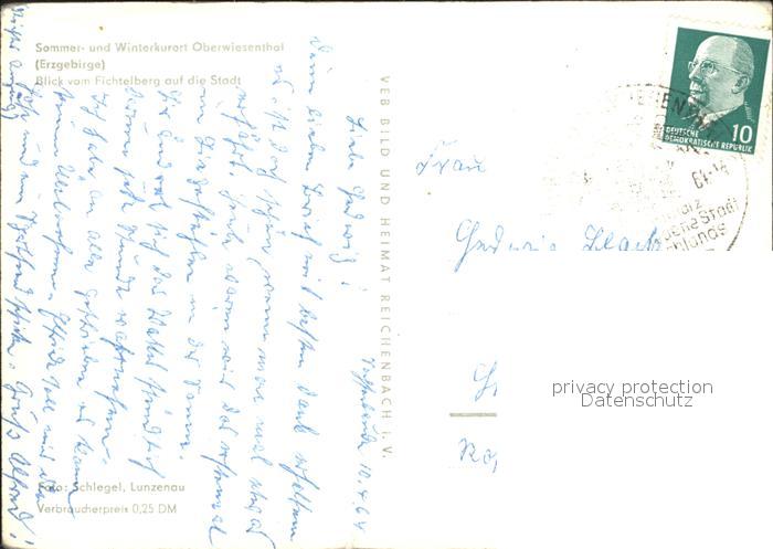 72350907 alte Postkarte Oberwiesenthal Erzgebirge Winterpanorama Blick vom Fichtelberg Bergbahn postalisch gelaufen Erhaltung siehe scans KatCode: 11110014171240