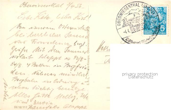 73819967 alte Postkarte Oberwiesenthal Erzgebirge Wintersportgebiet mit Fichtelberg postalisch gelaufen Erhaltung siehe scans [FriedD77] KatCode: 11110014171240