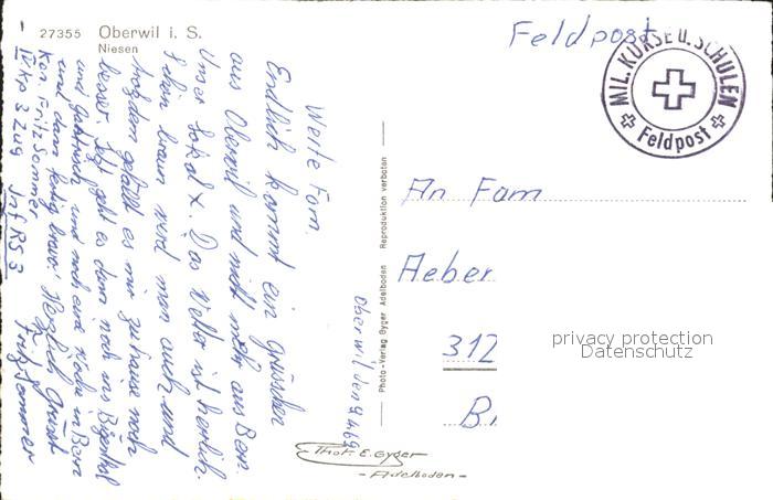 12055530 alte Postkarte Oberwil Simmental Niesen postalisch gelaufen Feldpost Erhaltung siehe scans KatCode: 11470060205554