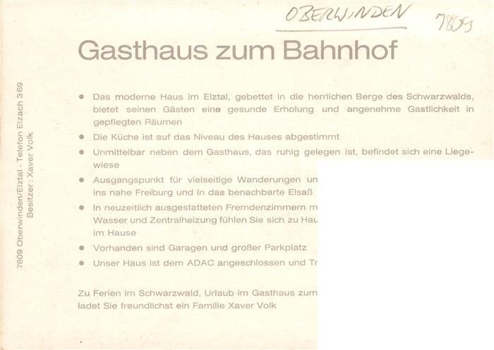 73929294 Oberwinden Elztal BW Gasthof zum Bahnhof Gastraeume postalisch nicht gelaufen Werbekarte (keine Postkarte) Erhaltung siehe scans [FriedD77] KatCode: 11110008316055