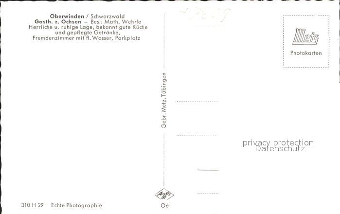 41767680 Oberwinden Elztal Gasth. z. Ochsen Speisesaal postalisch nicht gelaufen Erhaltung siehe scans KatCode: 11110008316055