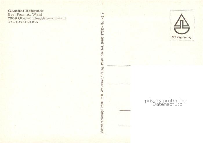 73323193 Oberwinden Elztal Gasthof Rebstock im Schwarzwald postalisch nicht gelaufen Erhaltung siehe scans [FriedD77] KatCode: 11110008316055