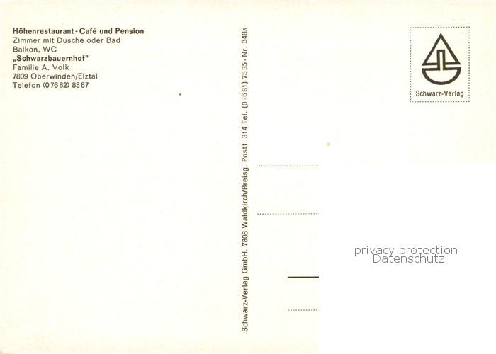73866727 Oberwinden Elztal Hoehenrestaurant Cafe und Pension Schwarzbauernhof postalisch nicht gelaufen Erhaltung siehe scans [WerneD78] KatCode: 11110008316055