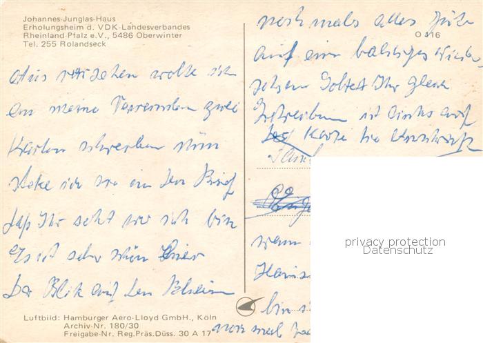 73780588 Oberwinter Rhein Johannes Junglas Haus Fliegeraufnahme postalisch nicht gelaufen Erhaltung siehe scans [WerneD78] KatCode: 11110007131070
