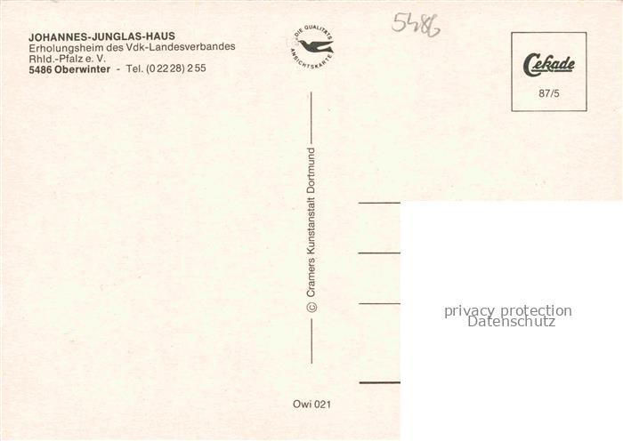 74054063 Oberwinter Rhein Remagen Johannes Junglas-Haus Erholungsheim Restaurant Hallenbad postalisch nicht gelaufen Erhaltung siehe scans [FriedD77] KatCode: 11110007131070