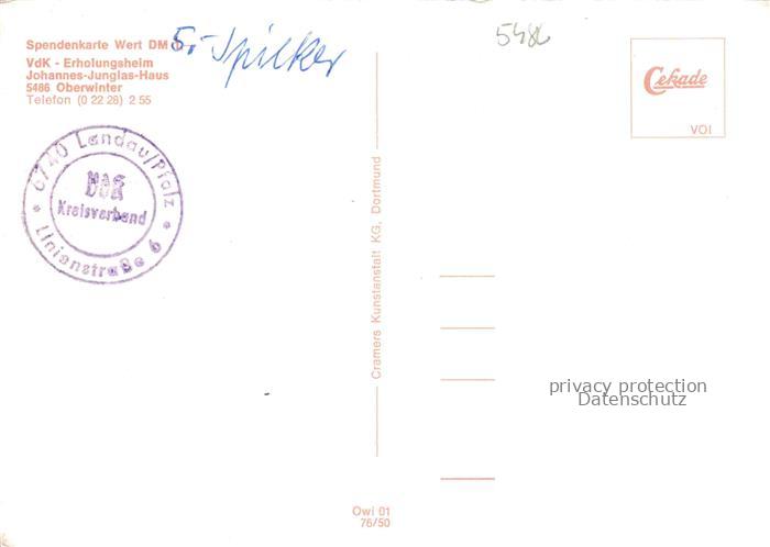 74054066 Oberwinter Rhein Remagen Johannes Junglas-Haus VdK-Erholungsheim postalisch nicht gelaufen Erhaltung siehe scans [FriedD77] KatCode: 11110007131070