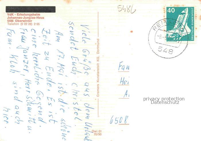 74054813 alte Postkarte Oberwinter Rhein Remagen VdK-Erholungsheim Johannes-Junglas-Haus postalisch gelaufen Erhaltung siehe scans [FriedD77] KatCode: 11110007131070