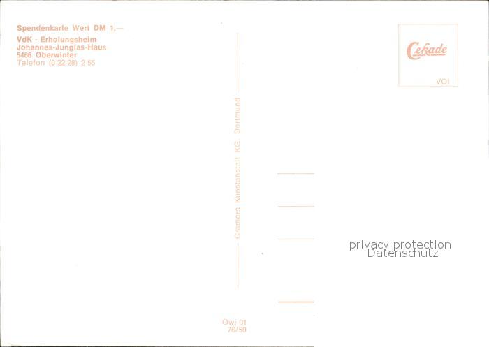 72209270 Oberwinter Rhein VdK Erholungsheim Johannes Junglas Haus postalisch nicht gelaufen Erhaltung siehe scans KatCode: 11110007131070