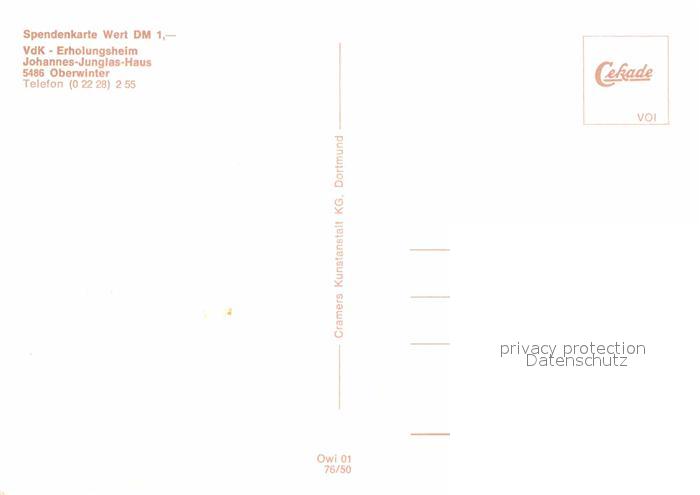 72837156 Oberwinter Rhein VdK Erholungsheim Johannes Junglas Haus Spendenkarte postalisch nicht gelaufen Erhaltung siehe scans [FriedD77] KatCode: 11110007131070
