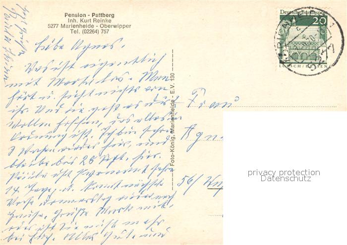 73717267 alte Postkarte Oberwipper Marienheide Pension Pattberg Gaststube Kaminzimmer postalisch gelaufen Erhaltung siehe scans [WerneD78] KatCode: 11110005374024