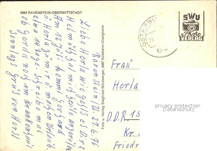 72024311 alte Postkarte Oberwittstadt postalisch gelaufen Erhaltung siehe scans KatCode: 11110008225114