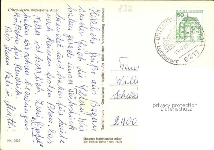 72607519 alte Postkarte Oberwoessen postalisch gelaufen Erhaltung siehe scans [NatalD47] KatCode: 11110009189160