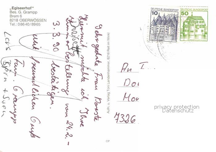 72899944 alte Postkarte Oberwoessen Eglseerhof postalisch gelaufen Erhaltung siehe scans [NatalD47] KatCode: 11110009189160
