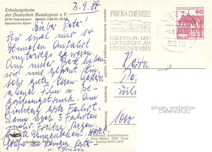 73655624 alte Postkarte Oberwoessen Erholungsheim der Deutschen Bundespost Blumenwiesen Bayerische Alpen postalisch gelaufen Erhaltung siehe scans [FriedD77] KatCode: 11110009189160