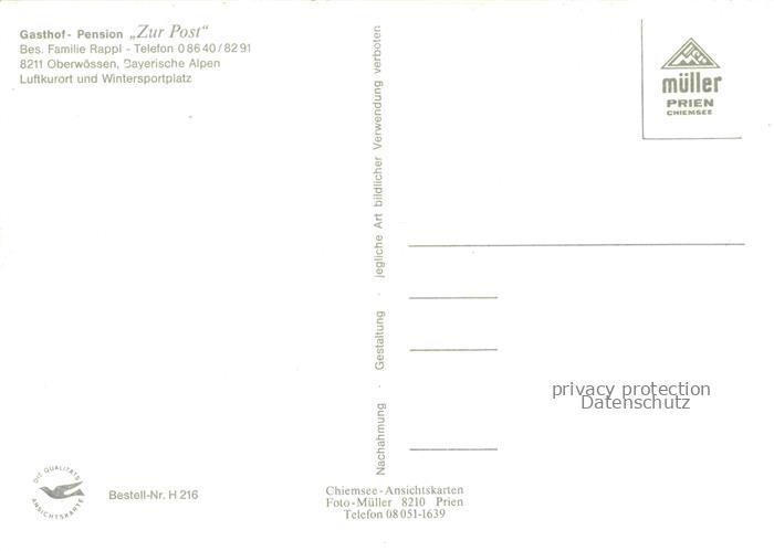 74044220 Oberwoessen Gasthof Pension Zur Post Hochgern Woessener See Hochschartenwand Rauhe Nadel postalisch nicht gelaufen Erhaltung siehe scans [WerneD78] KatCode: 11110009189160