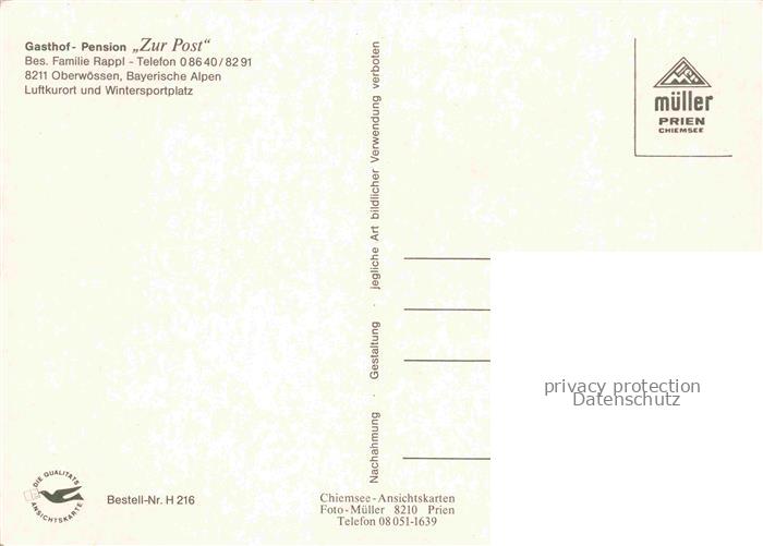74021051 Oberwoessen Gasthof zur Post Alpenpanorama Hochschartenwand Rauhe Nadel Hochgern Woessener See postalisch nicht gelaufen Erhaltung siehe scans [FriedD77] KatCode: 11110009189160