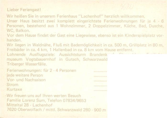 73930336 Oberwolfach Ferienhaus Lachenhof Panorama Schwarzwald postalisch nicht gelaufen Werbekarte (keine Postkarte) Erhaltung siehe scans [FriedD77] KatCode: 11110008317093