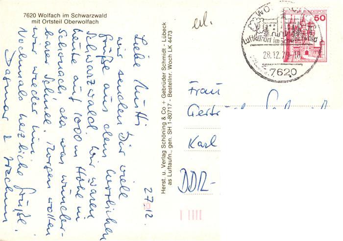 73931145 alte Postkarte Oberwolfach Fliegeraufnahme postalisch gelaufen Erhaltung siehe scans [FriedD77] KatCode: 11110008317093