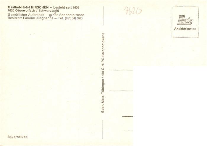 73944431 Oberwolfach Gasthof Hotel Hirschen Bauernstube postalisch nicht gelaufen Erhaltung siehe scans [FriedD77] KatCode: 11110008317093