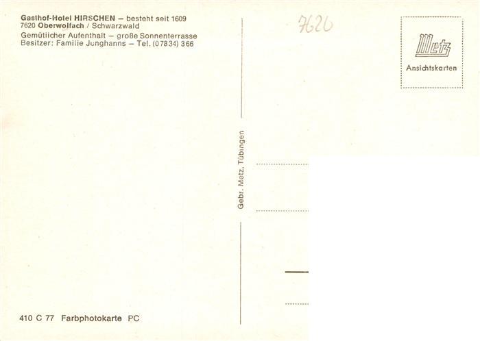 73944430 Oberwolfach Gasthof Hotel Hirschen Gastraum postalisch nicht gelaufen Erhaltung siehe scans [FriedD77] KatCode: 11110008317093