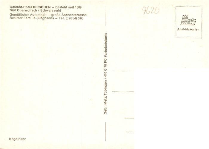 73944423 Oberwolfach Gasthof Hotel Hirschen Kegelbahn postalisch nicht gelaufen Erhaltung siehe scans [FriedD77] KatCode: 11110008317093