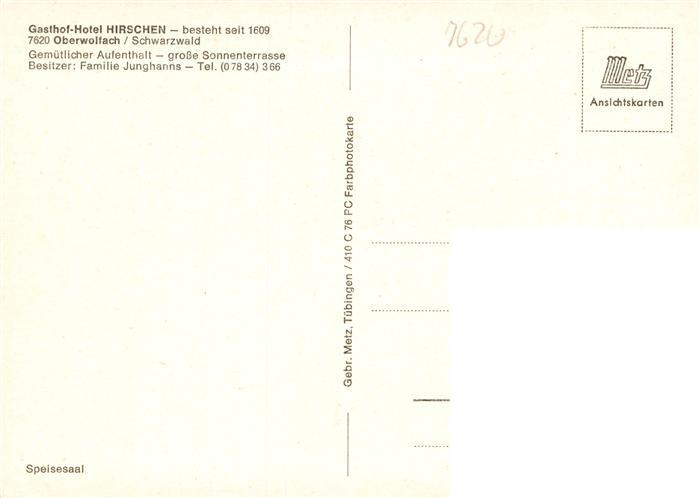 73944432 Oberwolfach Gasthof Hotel Hirschen Speisesaal postalisch nicht gelaufen Erhaltung siehe scans [FriedD77] KatCode: 11110008317093