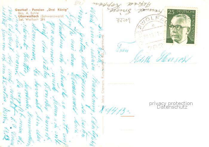 73653166 alte Postkarte Oberwolfach Gasthof Pension Drei Koenig postalisch gelaufen Erhaltung siehe scans [WerneD78] KatCode: 11110008317093