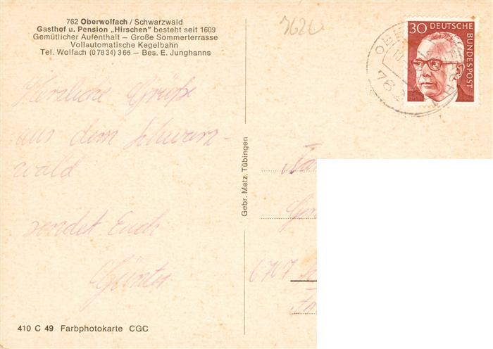 73930313 alte Postkarte Oberwolfach Gasthof Pension Hirschen an der Wolf Schwarzwald postalisch gelaufen Erhaltung siehe scans [FriedD77] KatCode: 11110008317093