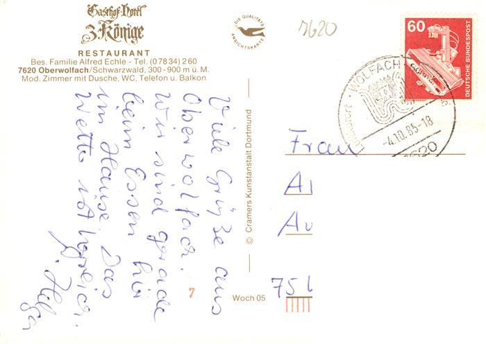 73931095 alte Postkarte Oberwolfach Hotel Restaurant 3 Koenige Gastraeume postalisch gelaufen Erhaltung siehe scans [FriedD77] KatCode: 11110008317093