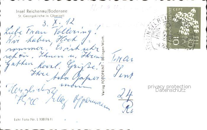 72152276 alte Postkarte Oberzell Reichenau St Georgskirche postalisch gelaufen Erhaltung siehe scans KatCode: 11110008335066