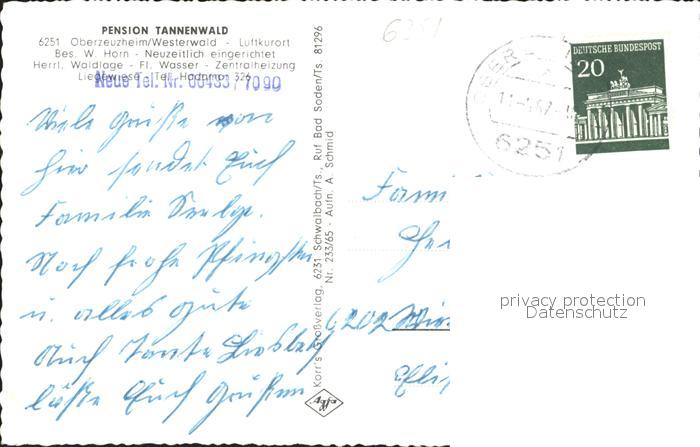 72130410 alte Postkarte Oberzeuzheim Panorama Luftkurort Pension Tannenwald Restaurant postalisch gelaufen Erhaltung siehe scans KatCode: 11110006533007