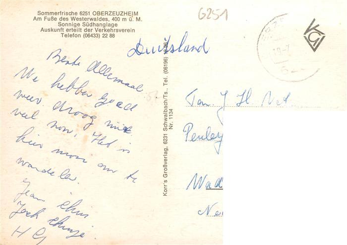 73936231 alte Postkarte Oberzeuzheim Sommerfrische Elbach Sieben Schmerzen Hotel Pension Gasthaus Reitsport Keltische Kultstaette Waldweg Wild postalisch gelaufen Erhaltung siehe scans [FriedD77] KatCode: 11110006533007