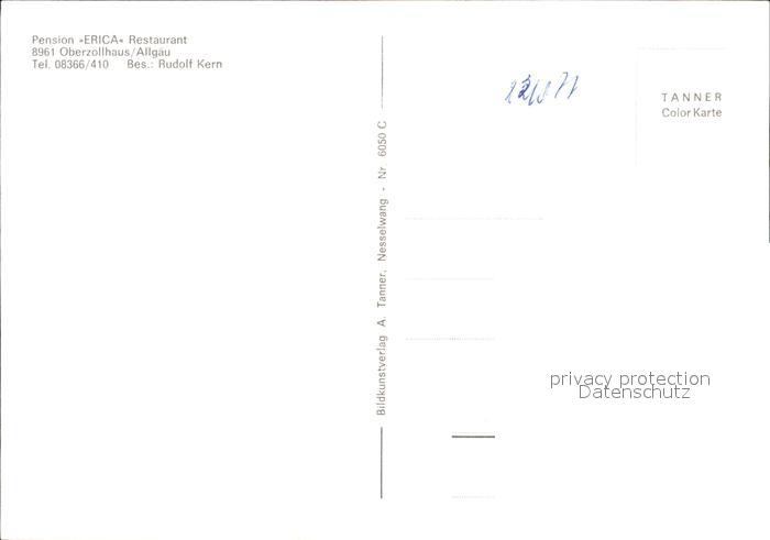 Oberzollhaus Pension Erica postalisch nicht gelaufen Erhaltung siehe scans
