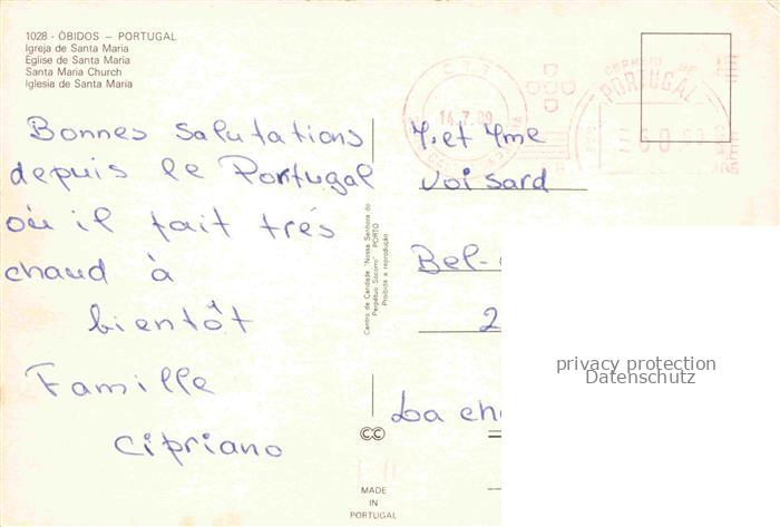 74036485 old postcard Obidos PT Igreja de Santa Maria Kirche postalisch gelaufen Erhaltung siehe scans [FriedD77] KatCode: 11420