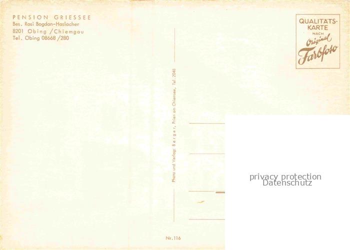 74136910 Obing Pension Griessee postalisch nicht gelaufen Erhaltung siehe scans [WerneD78] KatCode: 11110009189133