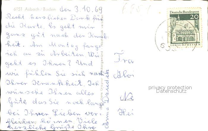 31727440 alte Postkarte Obrigheim Baden Asbach Kirche postalisch gelaufen Erhaltung siehe scans KatCode: 11110008225074