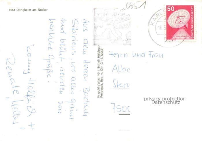 74048244 alte Postkarte Obrigheim Baden Fliegeraufnahme postalisch gelaufen Erhaltung siehe scans [FriedD77] KatCode: 11110008225074