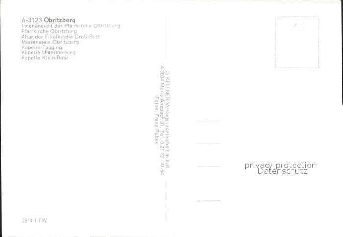 72229511 Obritzberg-Rust Pfarrkirche Inneres Altar Filialkirche Gross-Rust Marienstein postalisch nicht gelaufen Erhaltung siehe scans KatCode: 11390123031930