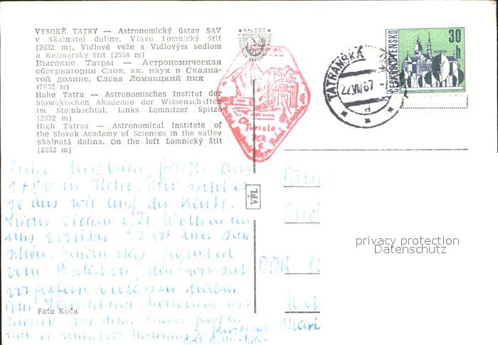 72378090 Observatorium Sternwarte Urania Hohe Tatra Steinbachtal Lomnitzer Spitze KatCode 22140000001200