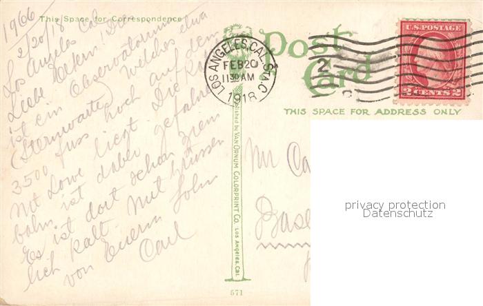 13550321 Observatorium Sternwarte Urania Lowe Observatory California postalisch gelaufen Erhaltung siehe scans [PaolaD17] alte Postkarte Paol Katcode 22140000001200