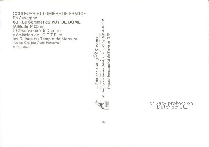 Observatorium Sternwarte Urania Puy de Dome Centre d emission de l’O.R.T.F. Fliegeraufnahme postalisch nicht gelaufen Erhaltung siehe scans