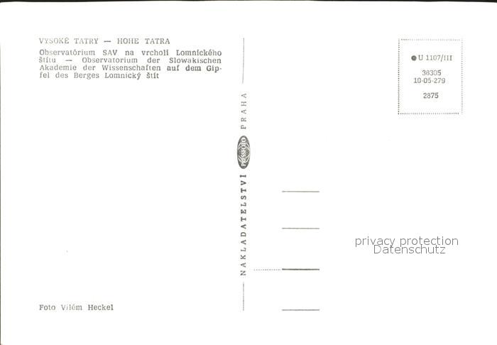 Observatorium Sternwarte Urania SAV Lomnicky Stit Vysoke Tatry postalisch nicht gelaufen Erhaltung siehe scans