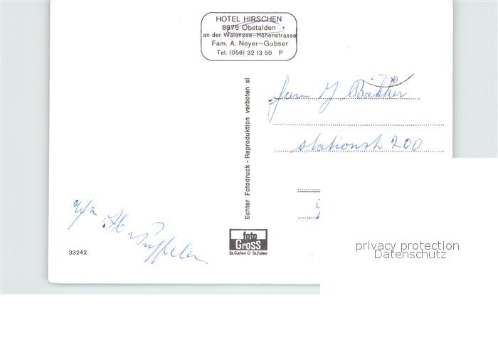 12573889 Obstalden Hotel Hirschen postalisch nicht gelaufen Erhaltung siehe scans [WerneD78] KatCode: 11470090300912