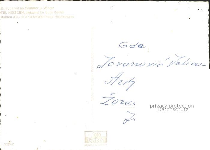 11631999 Obstalden Hotel Hirschen an der Walensee Hochstrasse postalisch nicht gelaufen Alte Ansichtskarte Postkarte hz_F Katcode 11470090300912