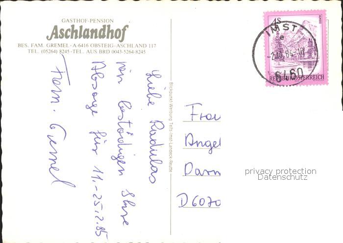 42923843 alte Postkarte Obsteig Tirol Aschlandhof Kapelle postalisch gelaufen Erhaltung siehe scans [WerneD48] KatCode: 11390334070213